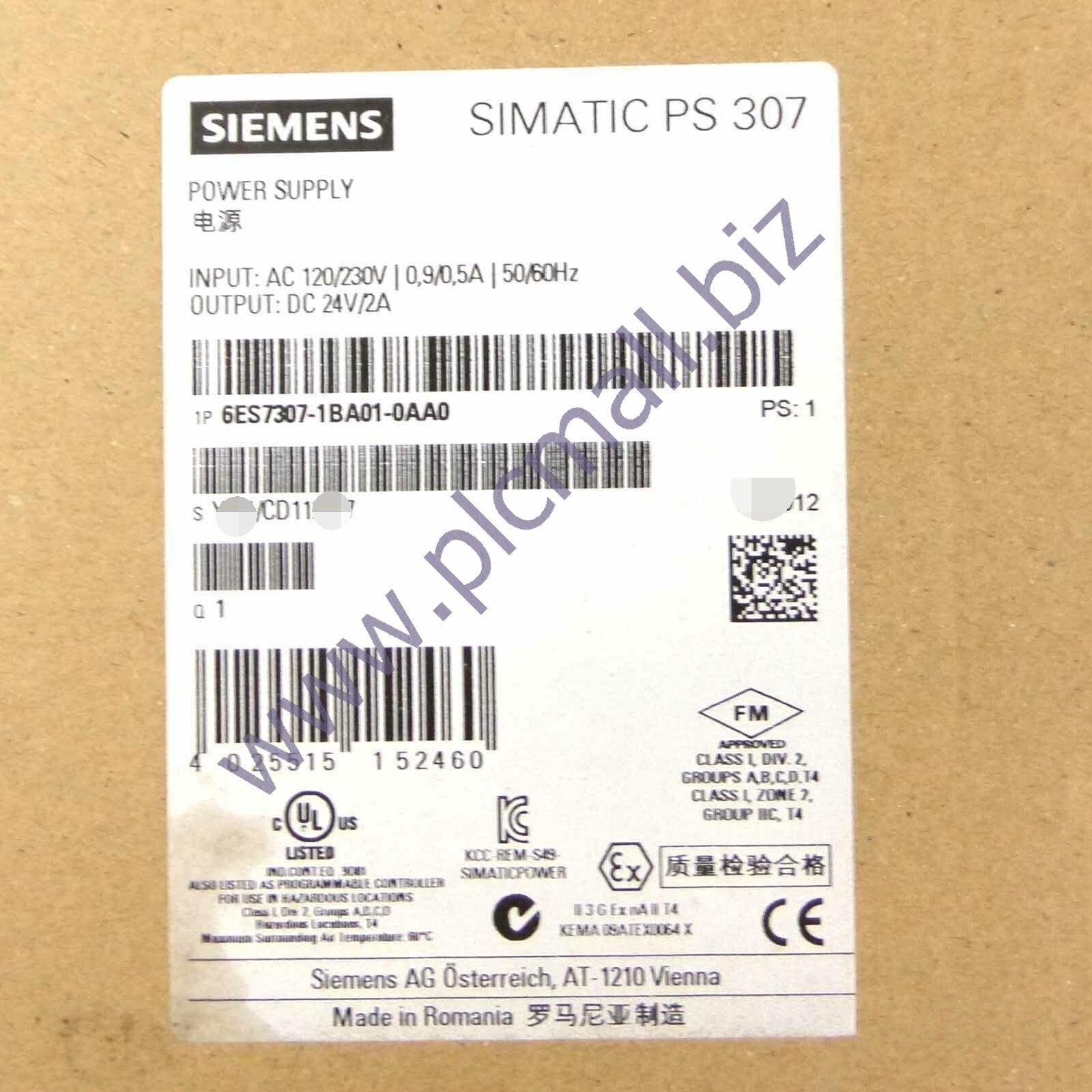 6ES7307-1BA01-0AA0 Siemens SIMATIC S7-300 stabilized power supply PS307 BRAND NEW